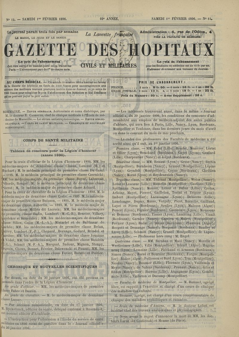 1896, tome 69e année. -