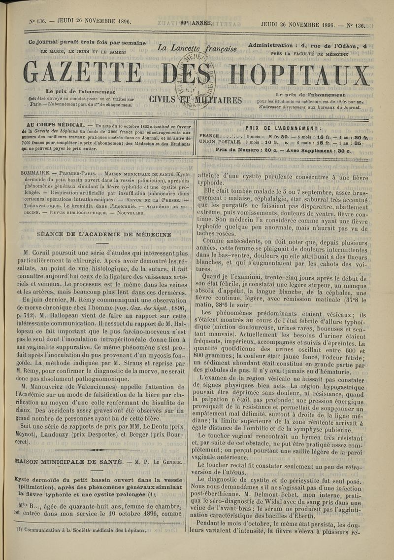 1896, tome 69e année. -