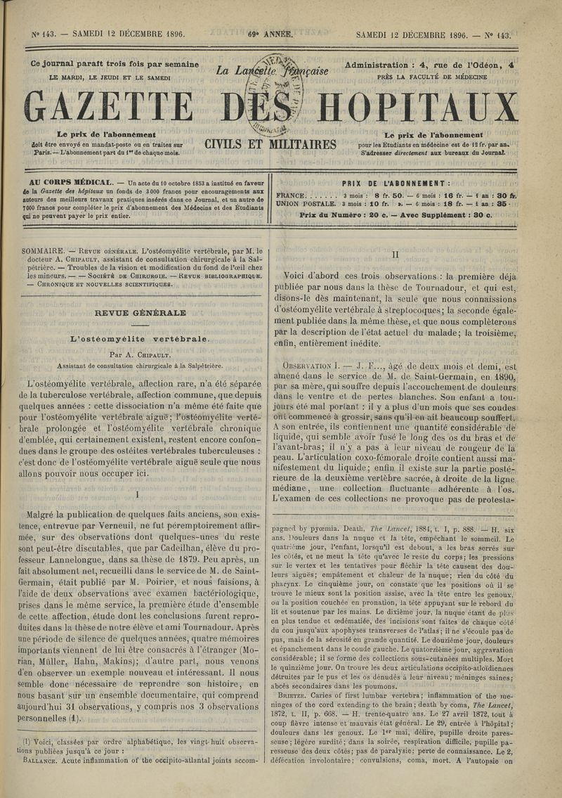 1896, tome 69e année. -