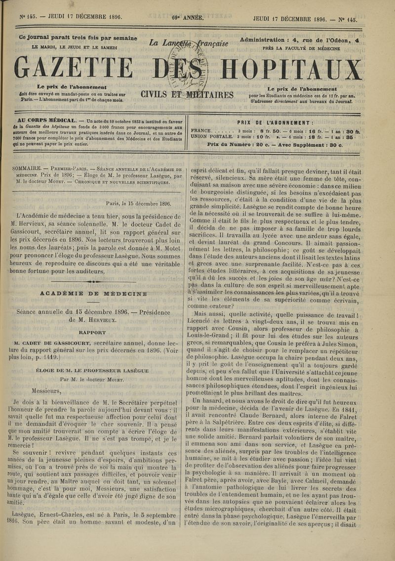 1896, tome 69e année. -