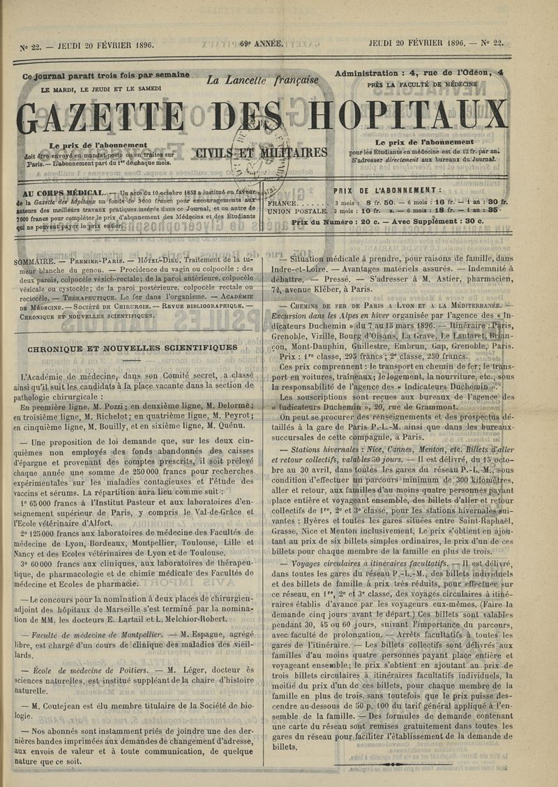 1896, tome 69e année. -
