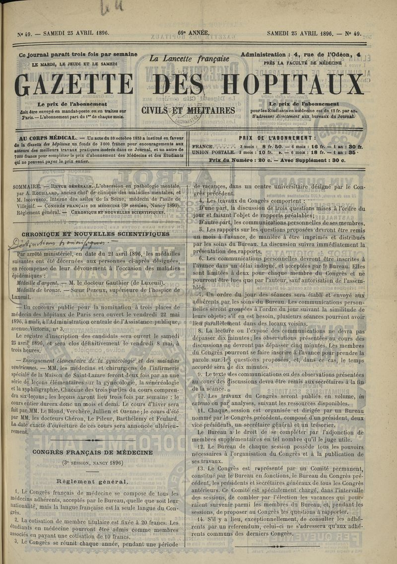 1896, tome 69e année. -