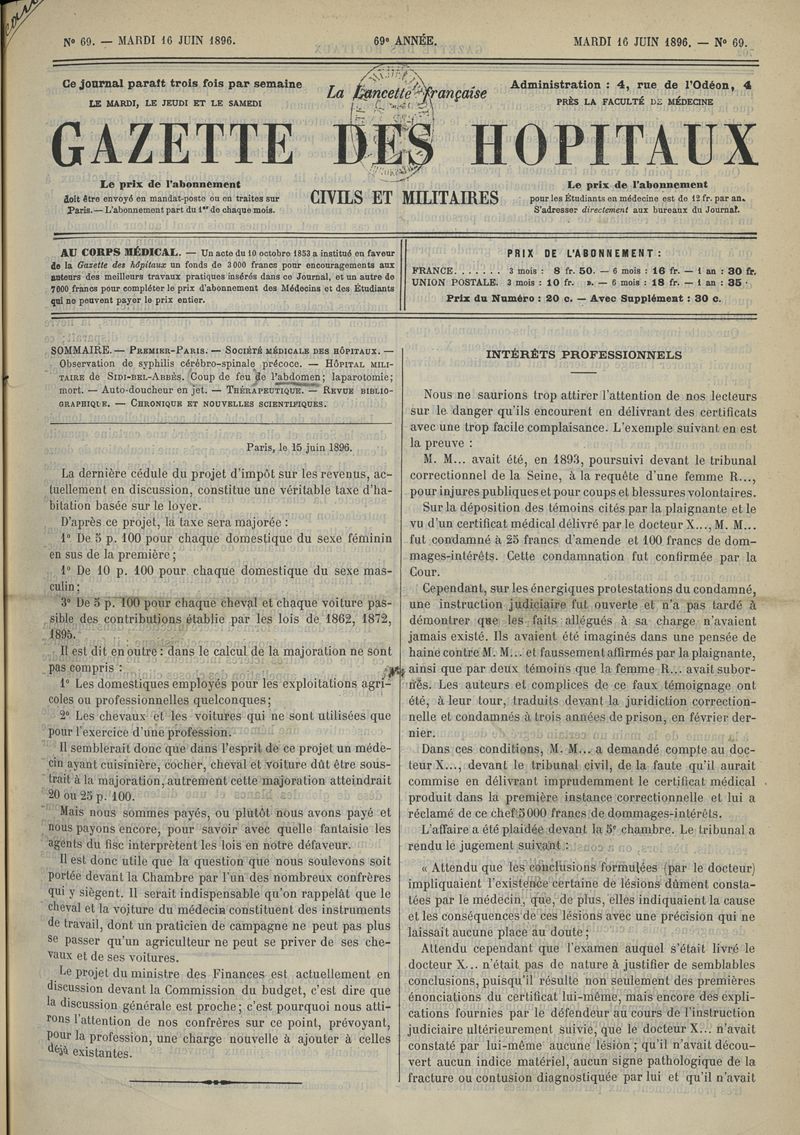1896, tome 69e année. -