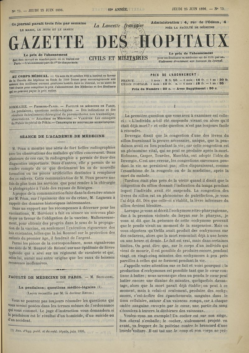 1896, tome 69e année. -