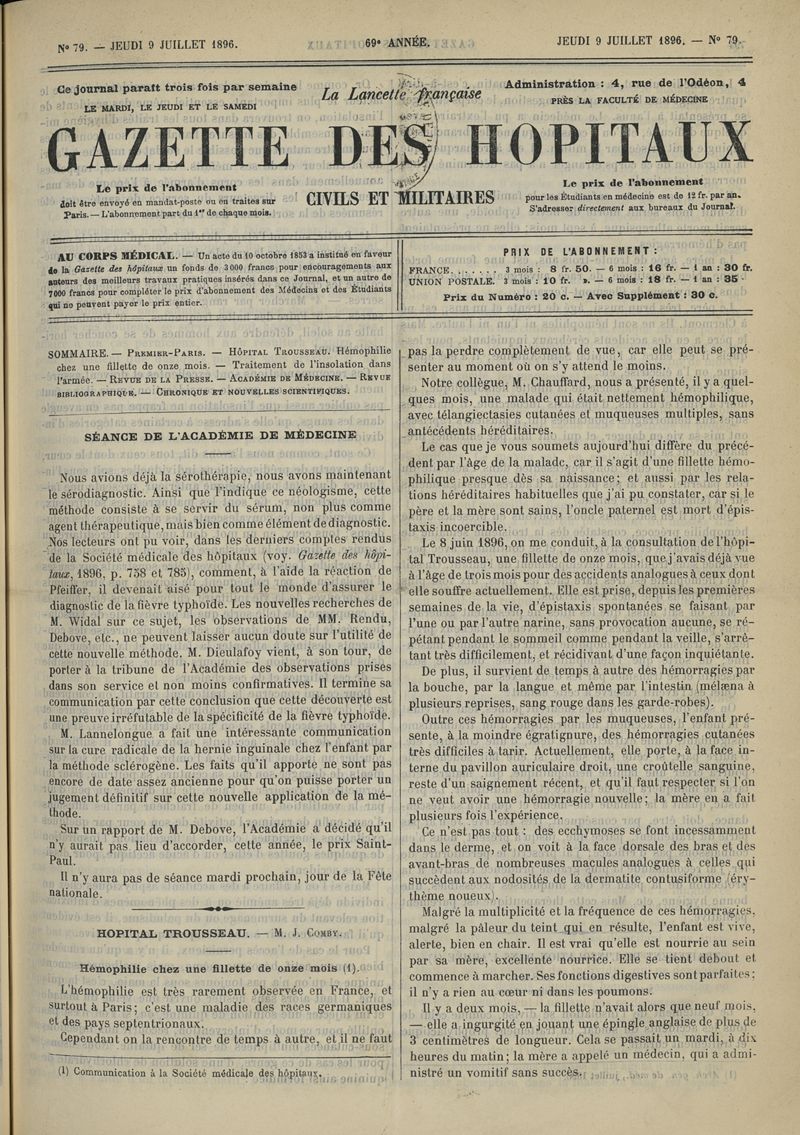 1896, tome 69e année. -