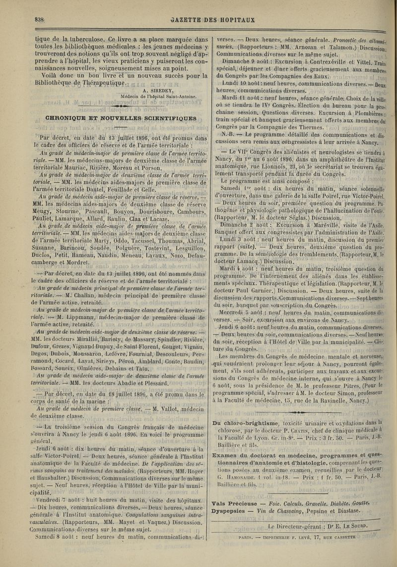 1896, tome 69e année. -