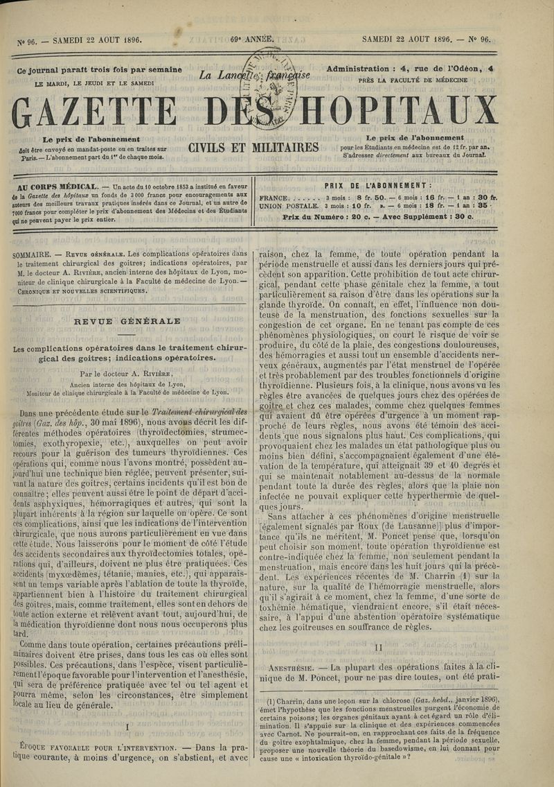 1896, tome 69e année. -