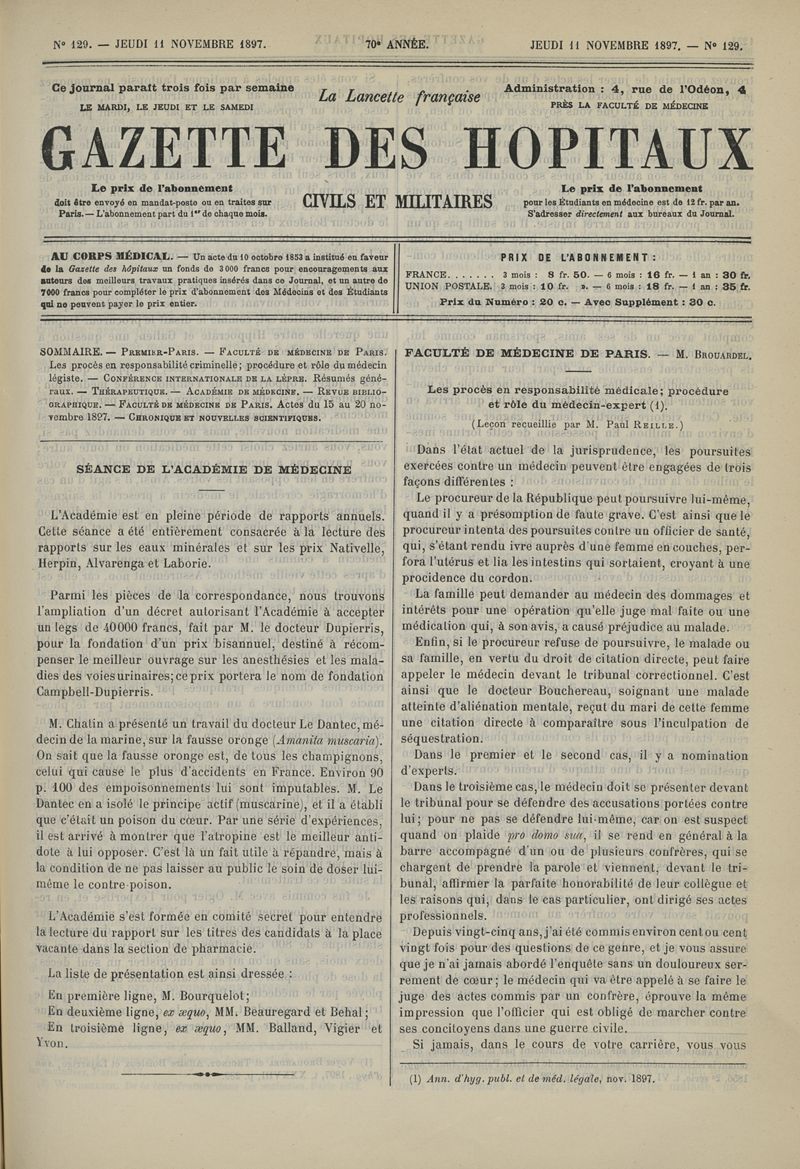 1897, tome 70e année. -