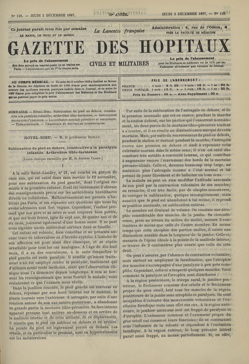 1897, tome 70e année. -