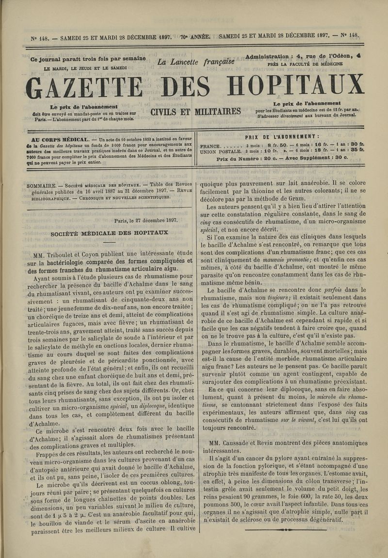 1897, tome 70e année. -