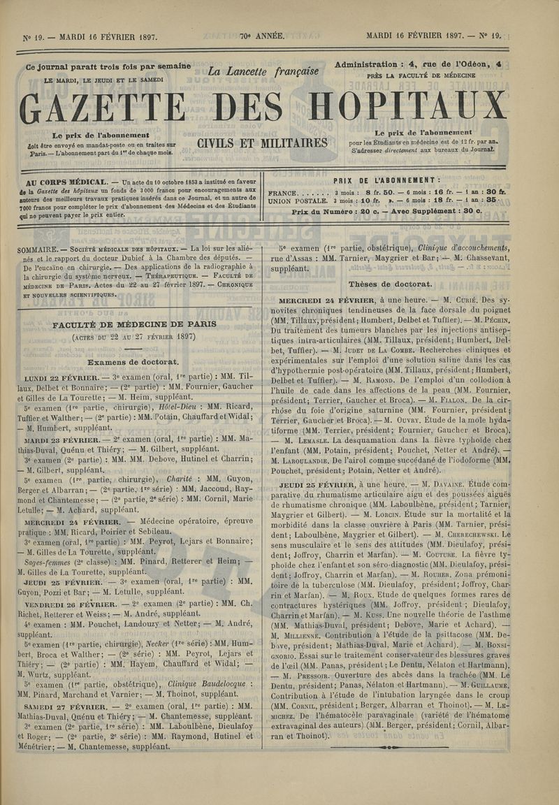 1897, tome 70e année. -
