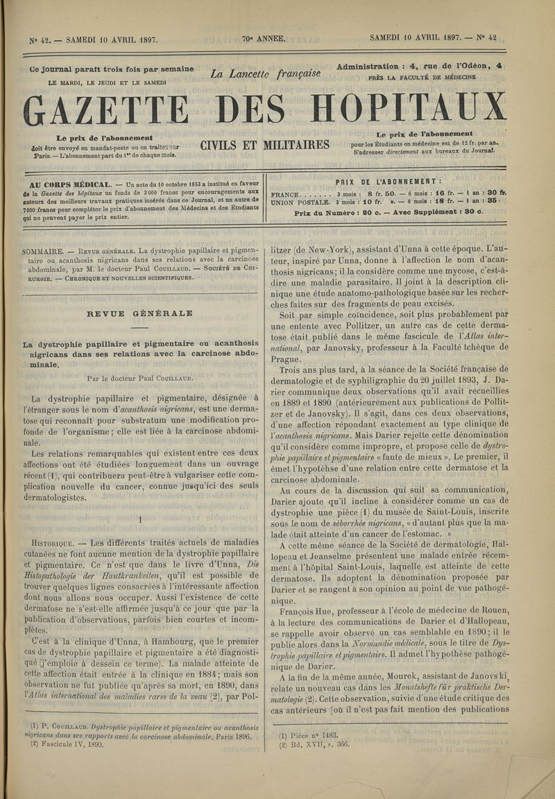 1897, tome 70e année. -