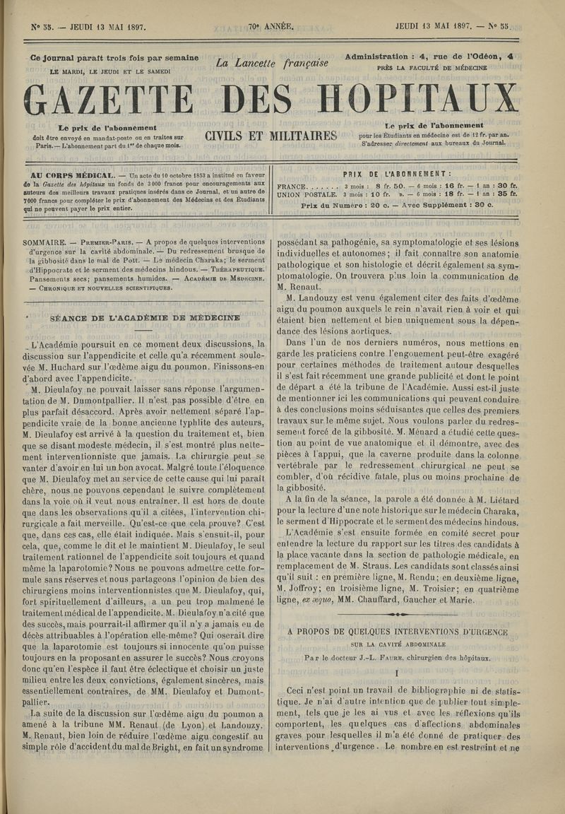 1897, tome 70e année. -