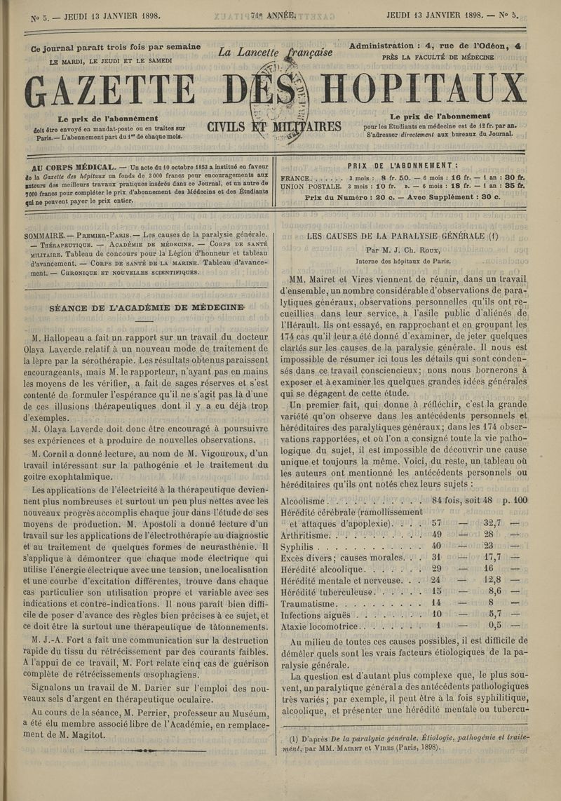 1898, tome 71e année. -