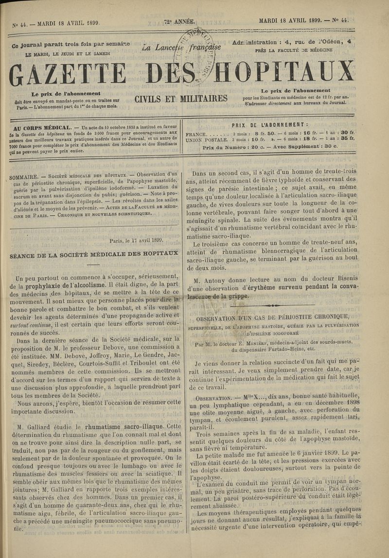 1899, tome 72e année. -