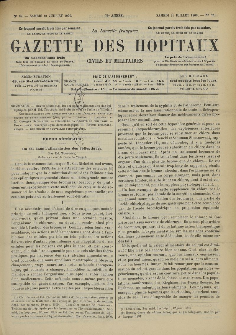 1900, tome 73e année. -