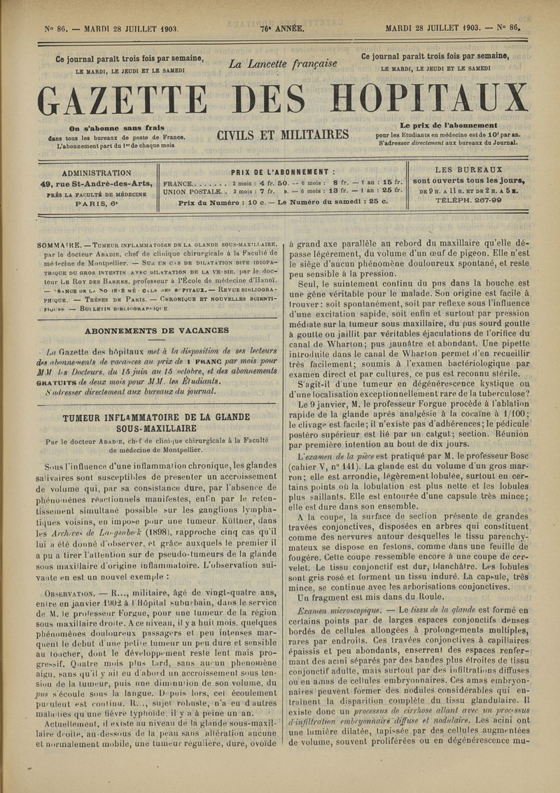 1903, tome 76e année. -