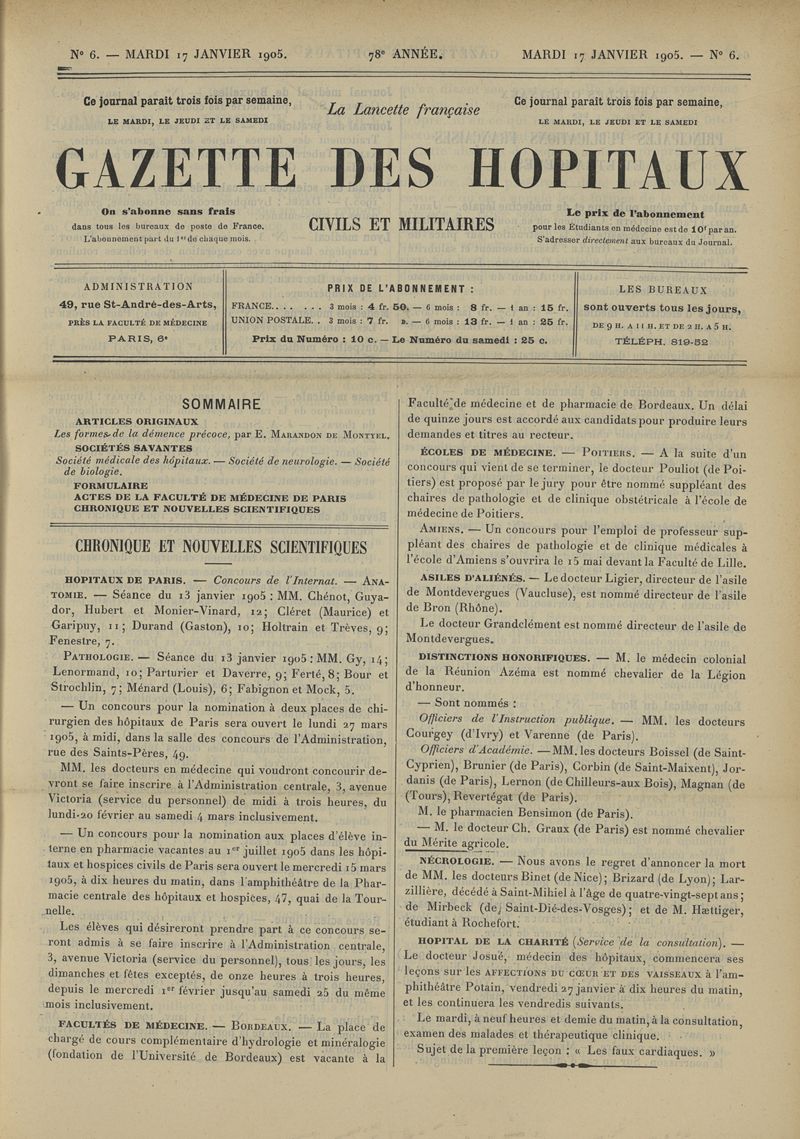 1905, tome 78e année. -