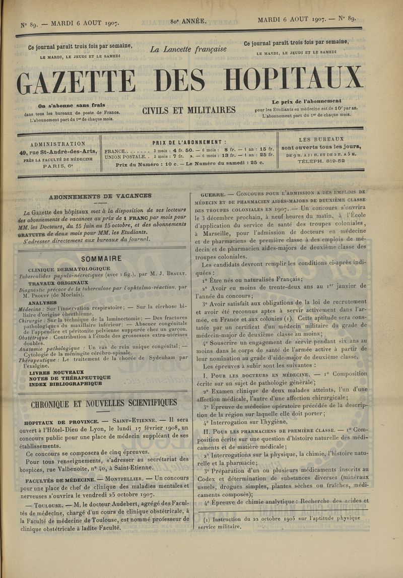 1907, tome 80ème année. -