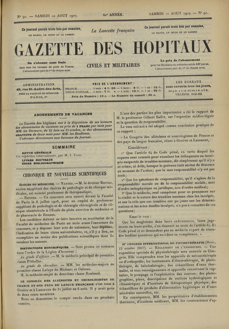 1907, tome 80ème année. -