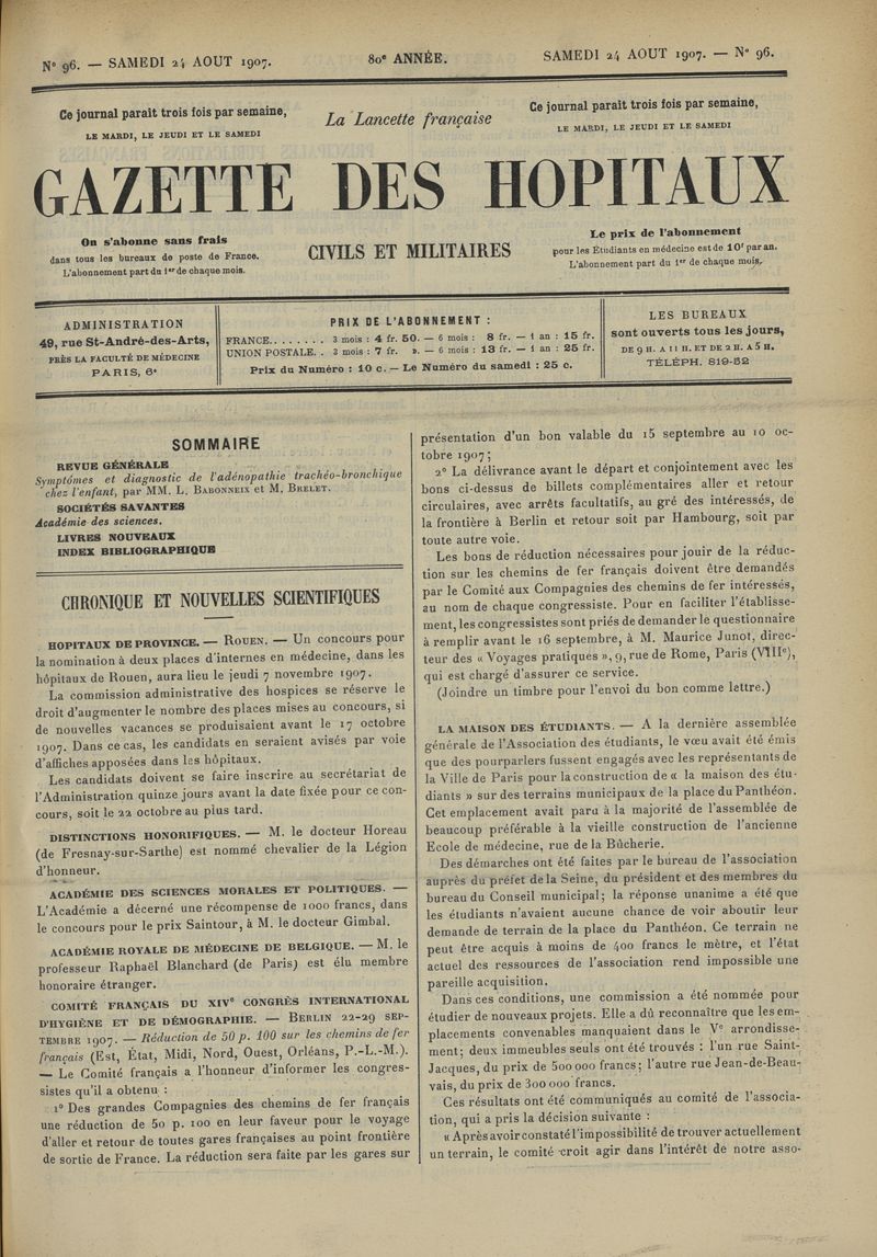 1907, tome 80ème année. -