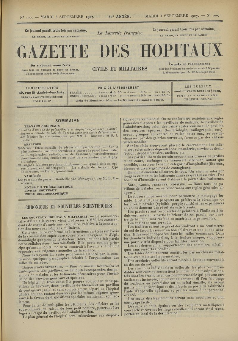 1907, tome 80ème année. -