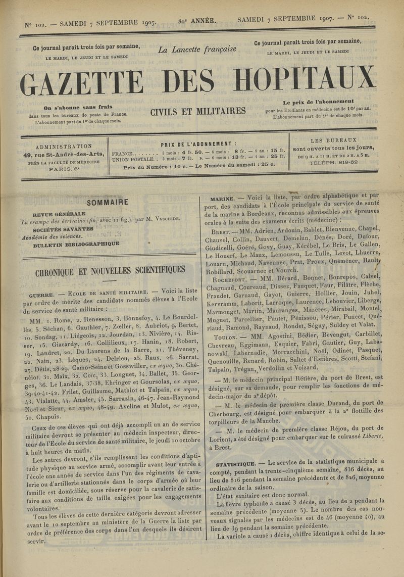 1907, tome 80ème année. -