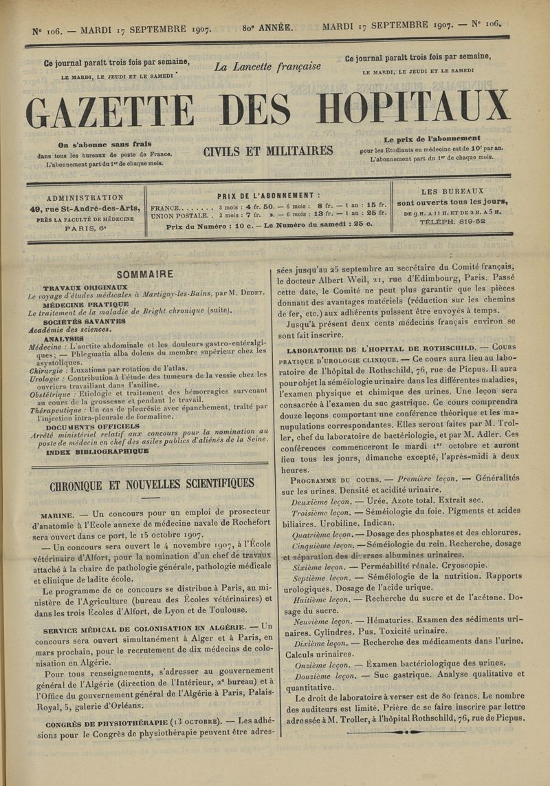1907, tome 80ème année. -