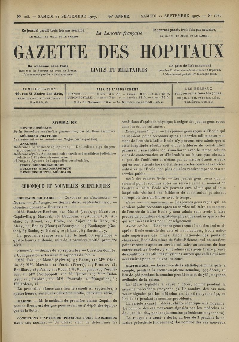 1907, tome 80ème année. -