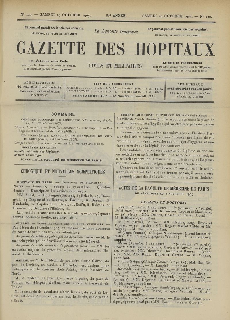 1907, tome 80ème année. -