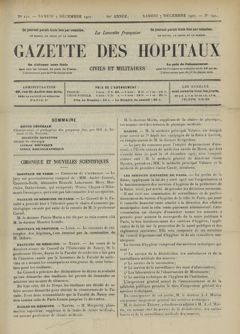 1907, tome 80ème année. -