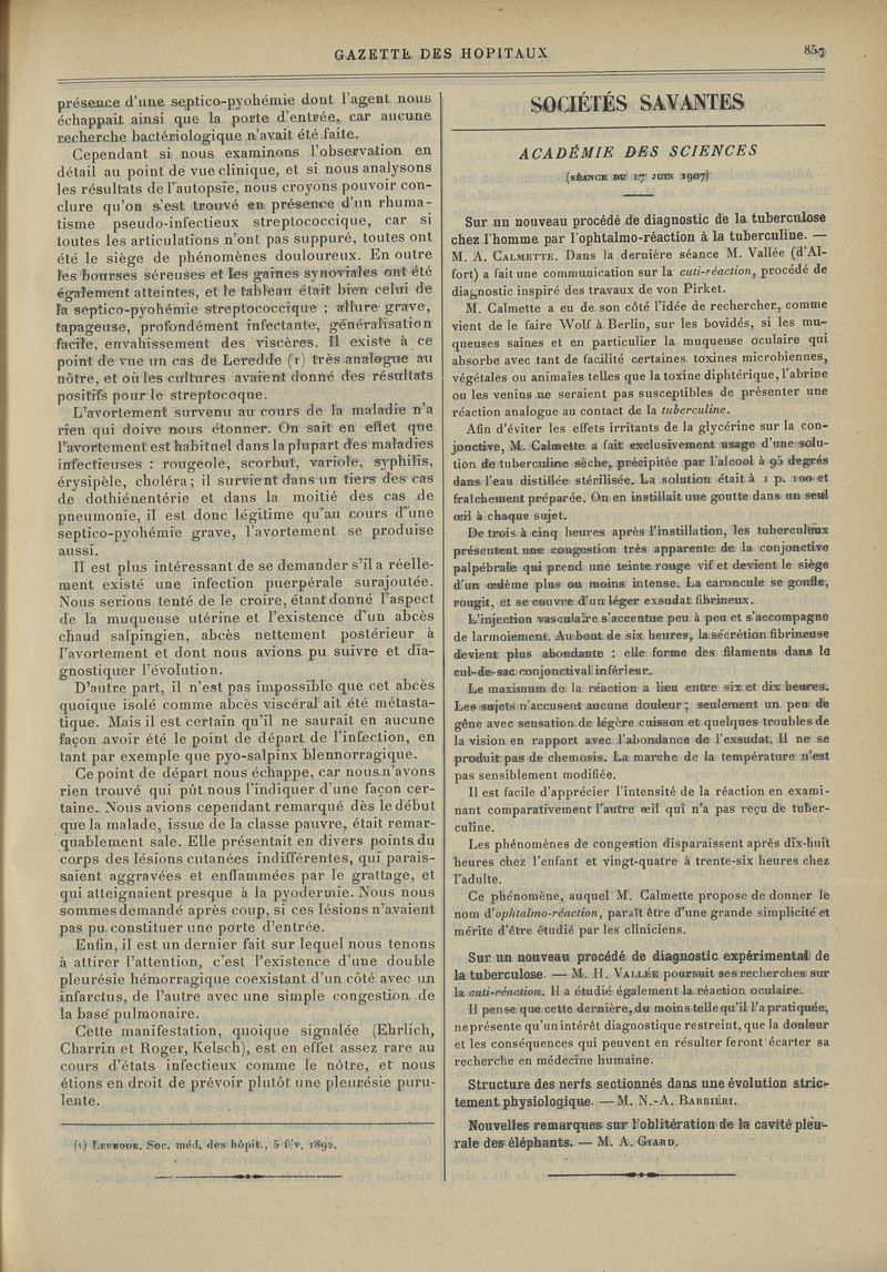 1907, tome 80ème année. -