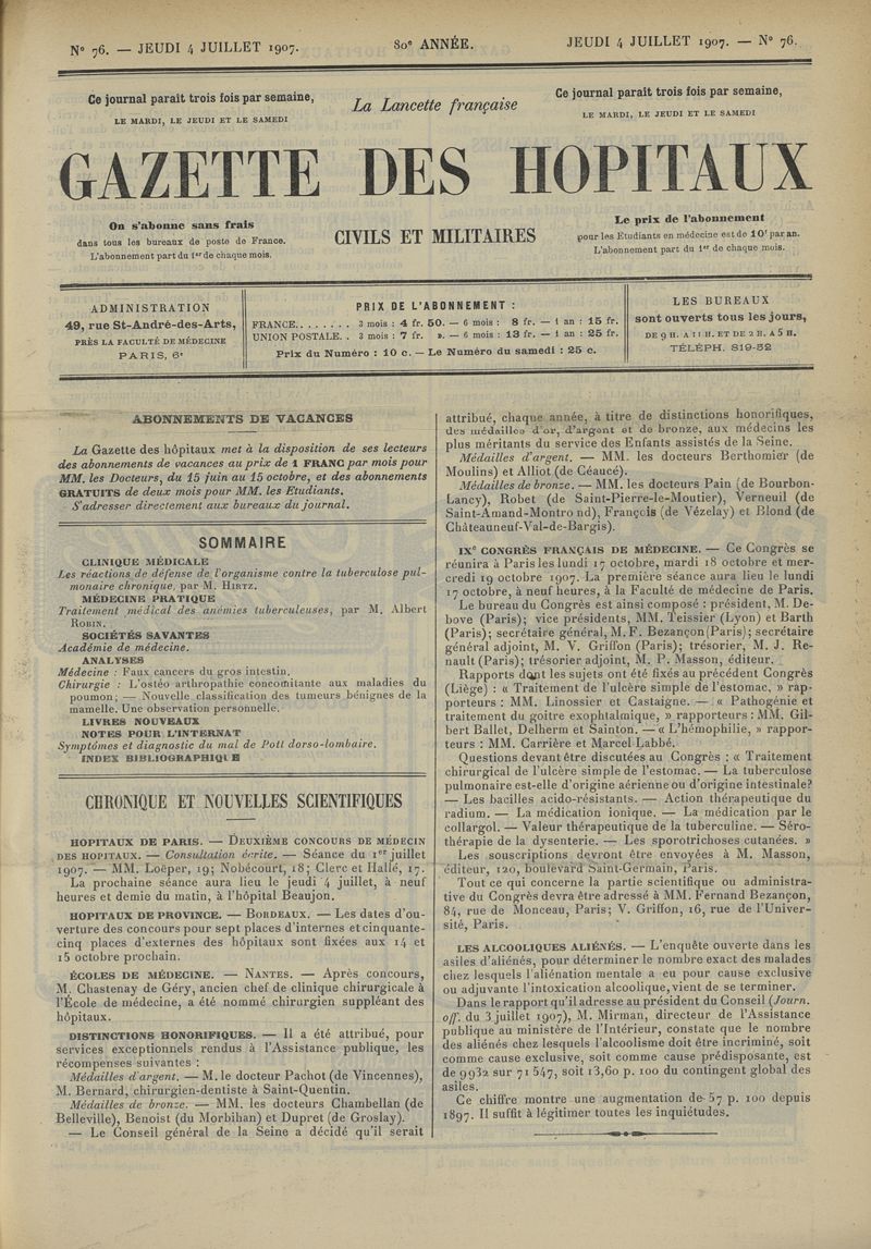 1907, tome 80ème année. -