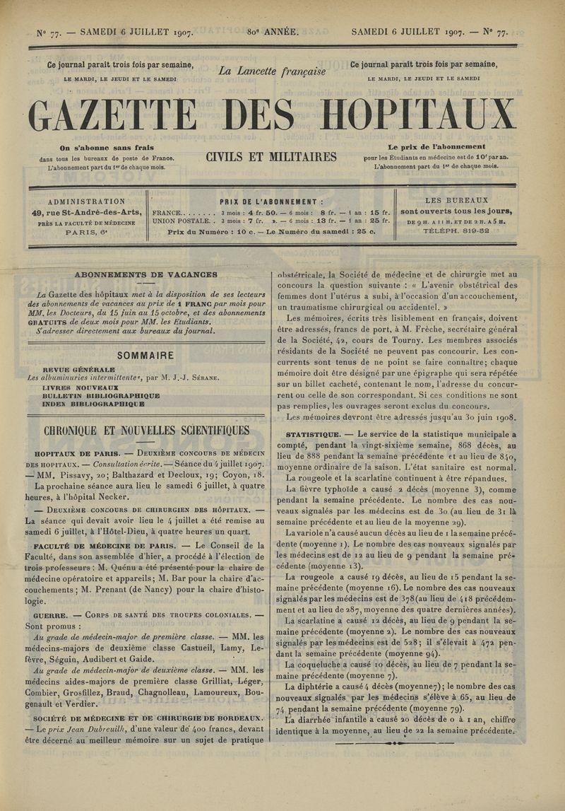 1907, tome 80ème année. -