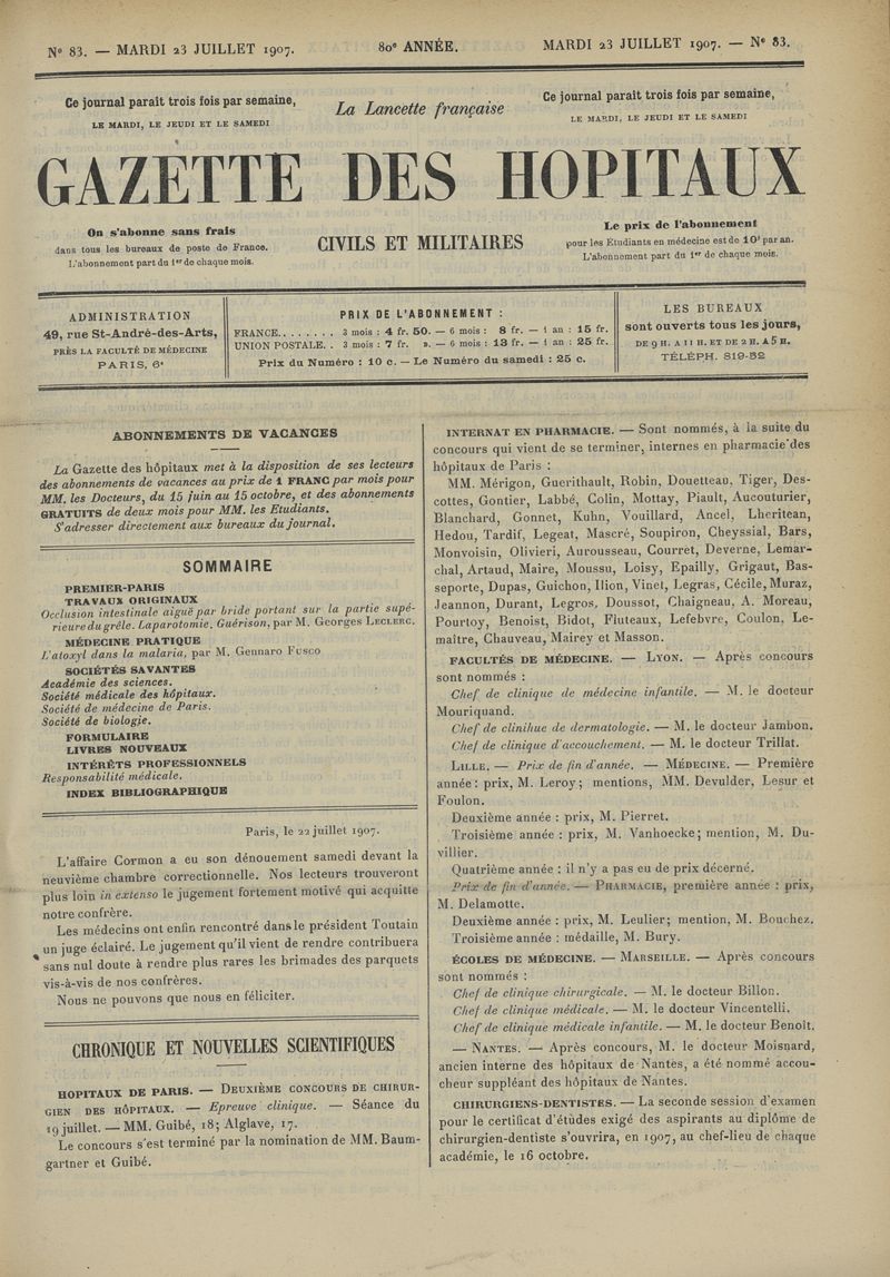 1907, tome 80ème année. -
