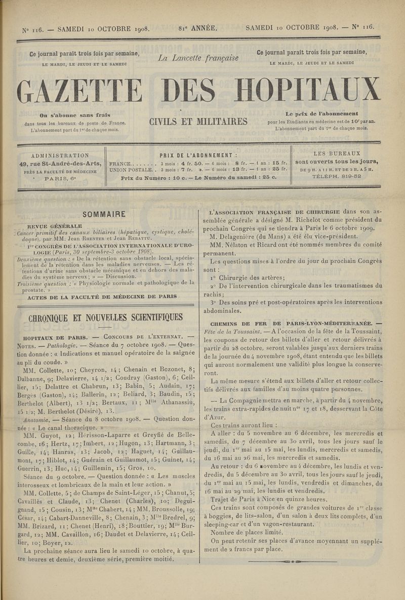 1908, tome 81e année. -