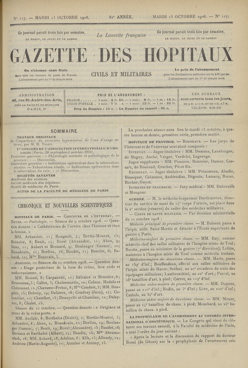 1908, tome 81e année. -