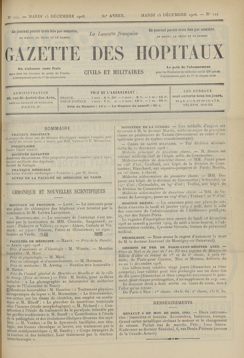1908, tome 81e année. -