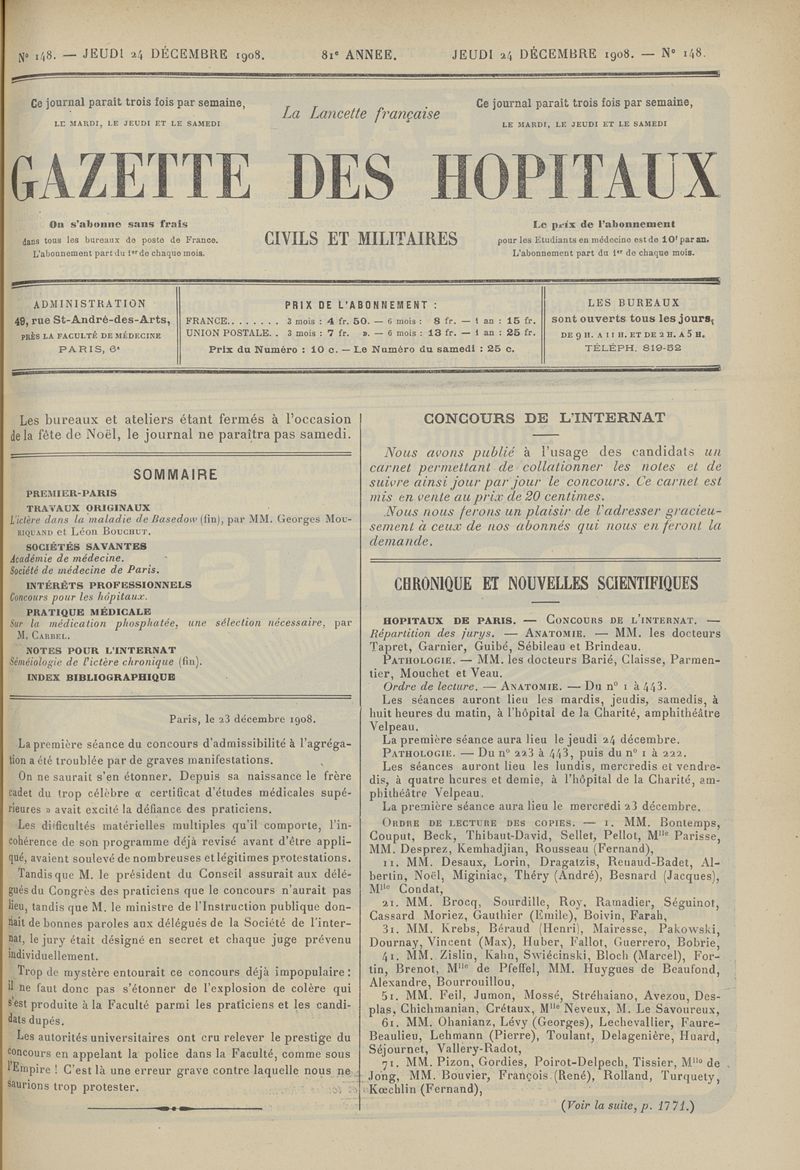 1908, tome 81e année. -