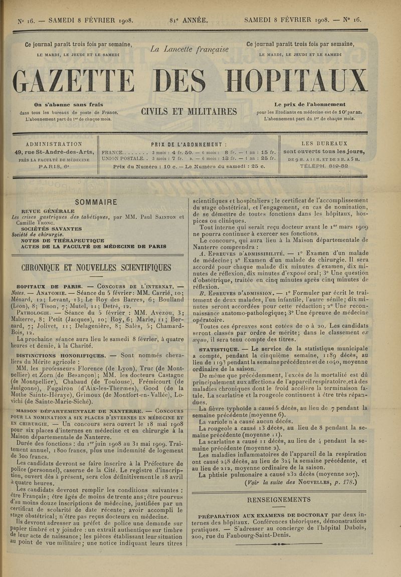 1908, tome 81e année. -