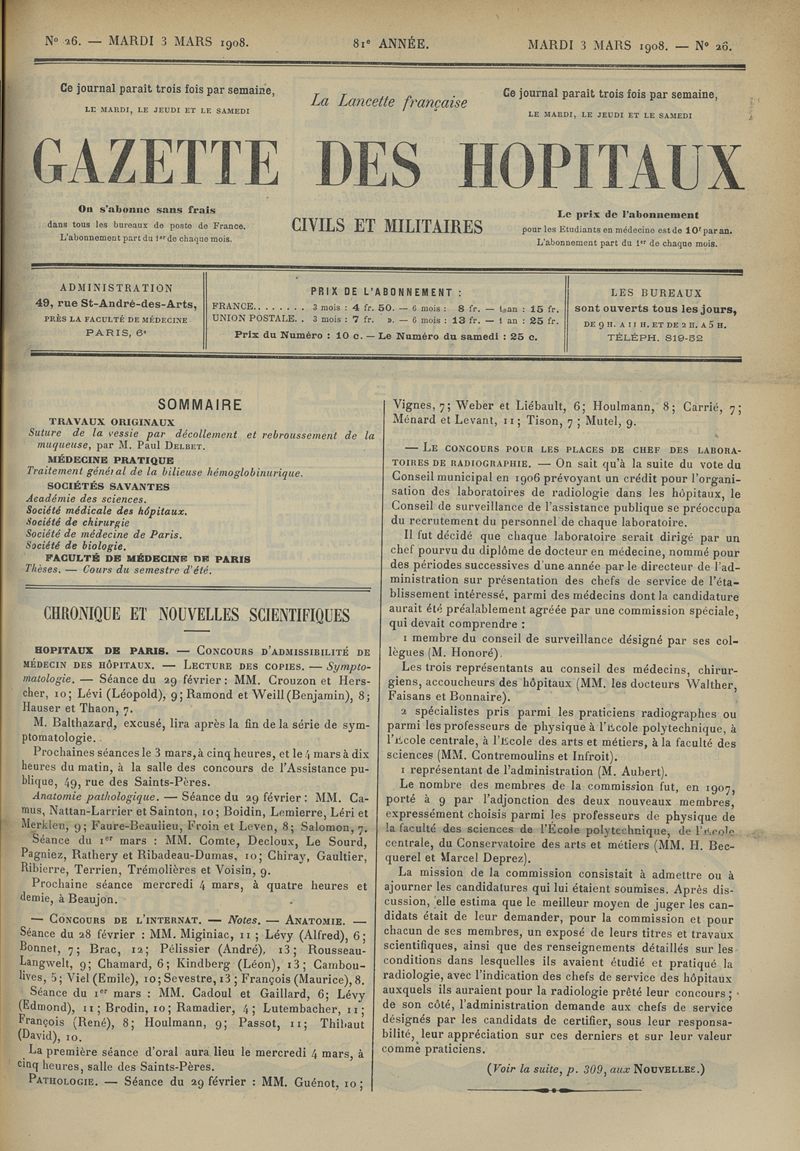 1908, tome 81e année. -