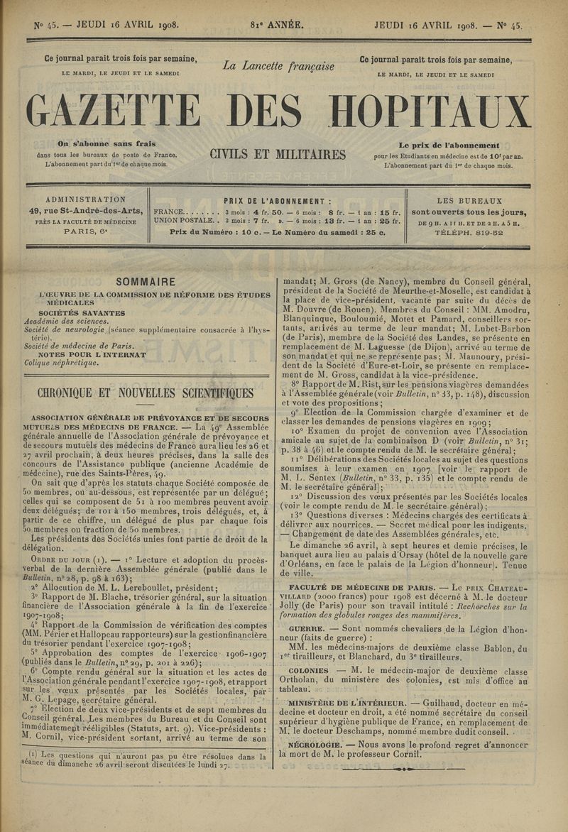 1908, tome 81e année. -
