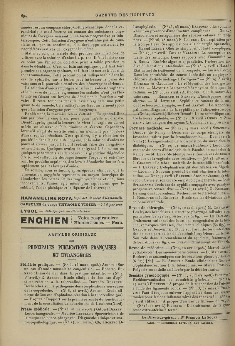 1908, tome 81e année. -