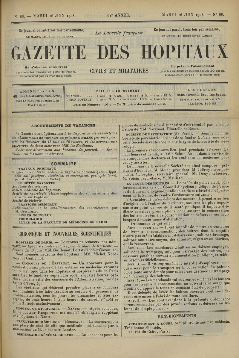 1908, tome 81e année. -