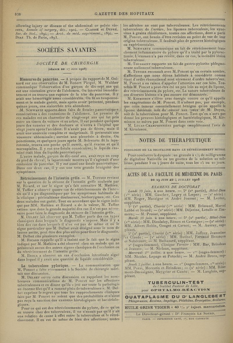 1908, tome 81e année. -