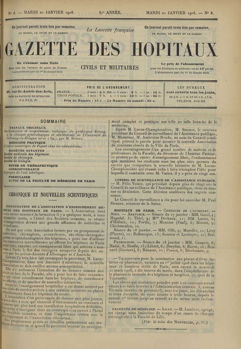 1908, tome 81e année. -