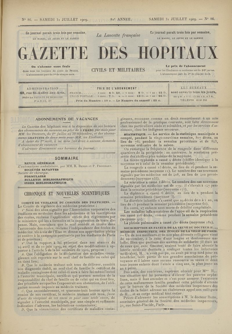 1909, tome 82e année. -