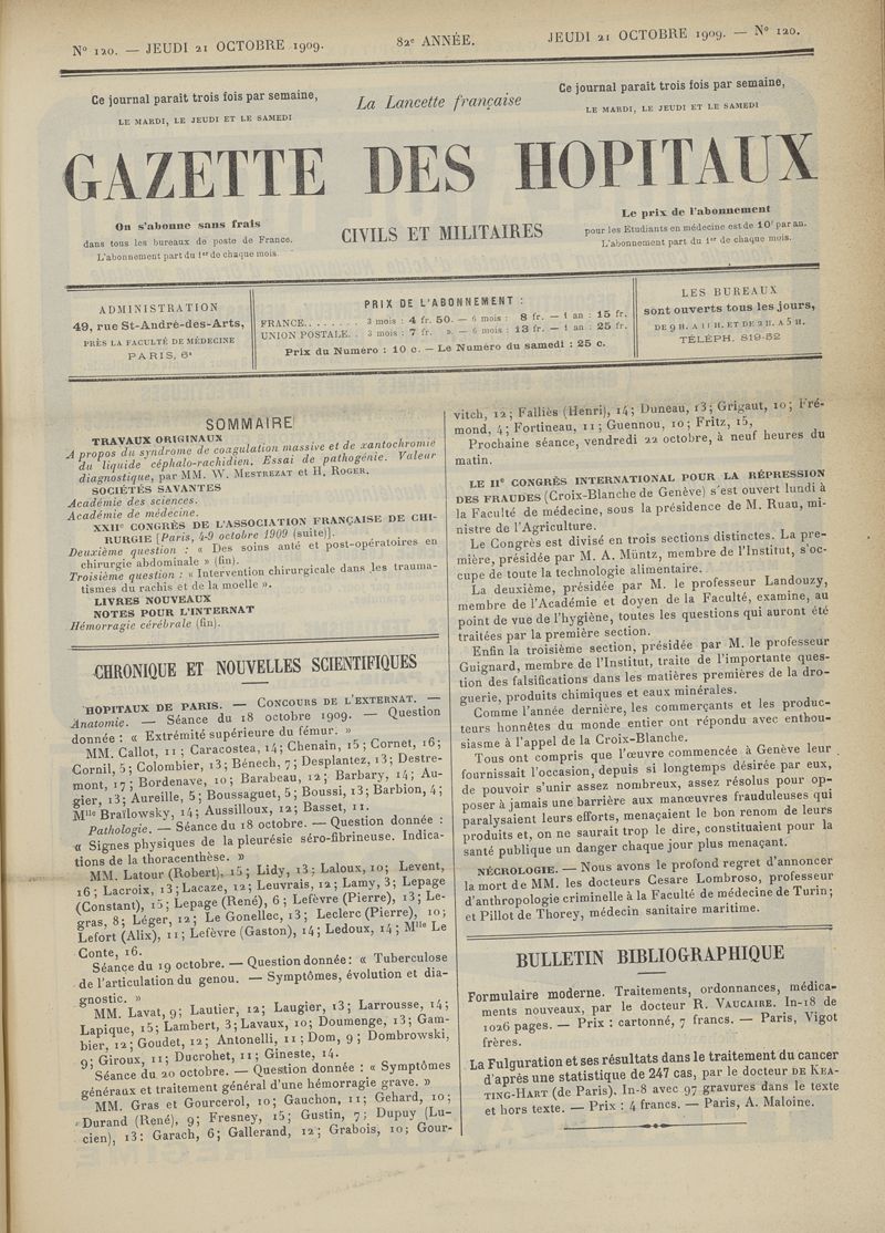 1909, tome 82e année. -
