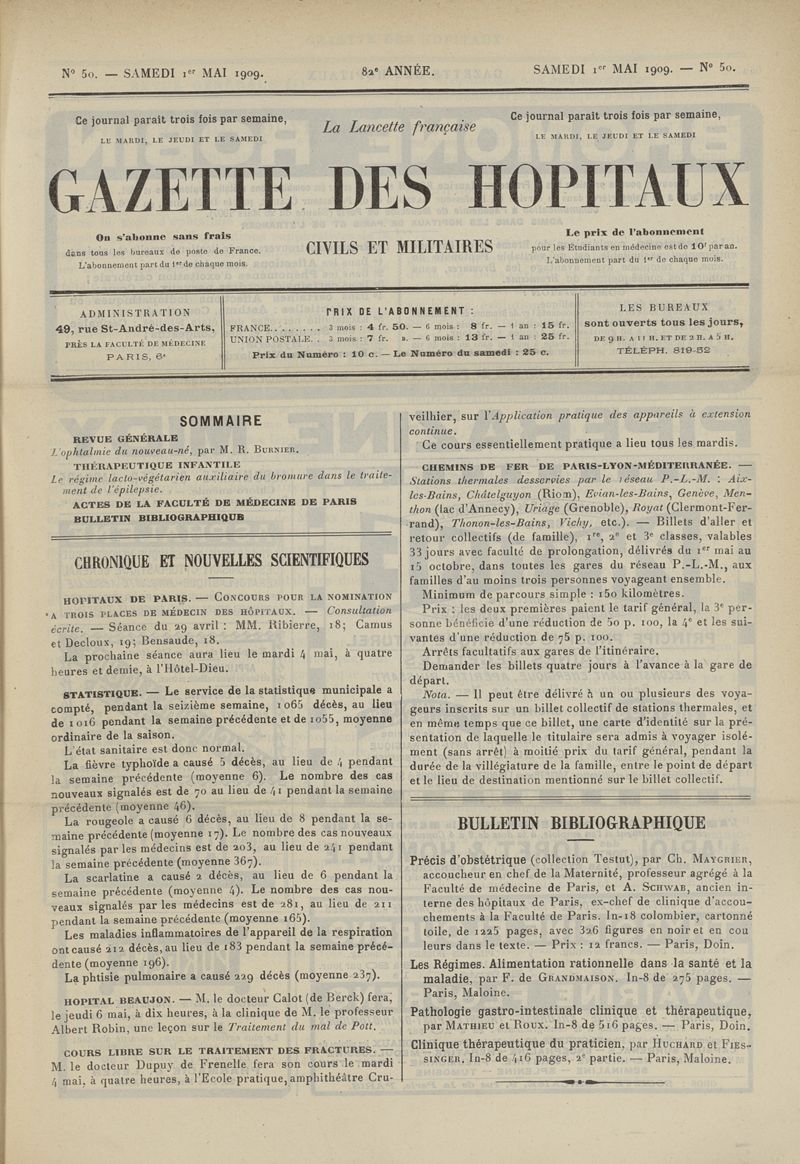 1909, tome 82e année. -