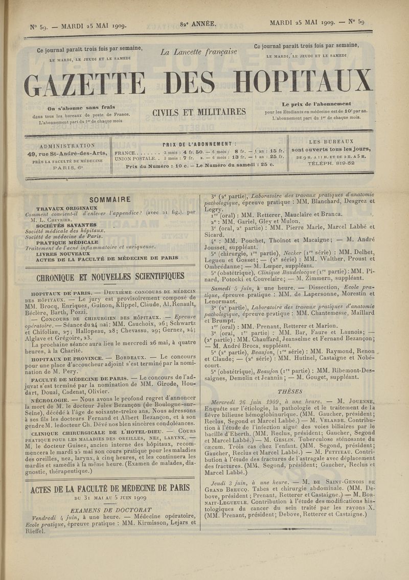 1909, tome 82e année. -